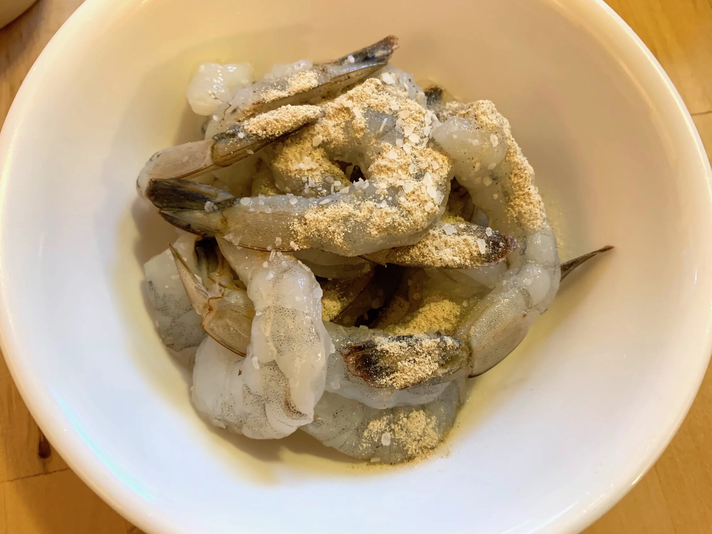 5. Add the shrimp to the pan in a single layer. Fry the shrimp for about 1 minute per side, flipping once, until the shrimp are just cooked through.
