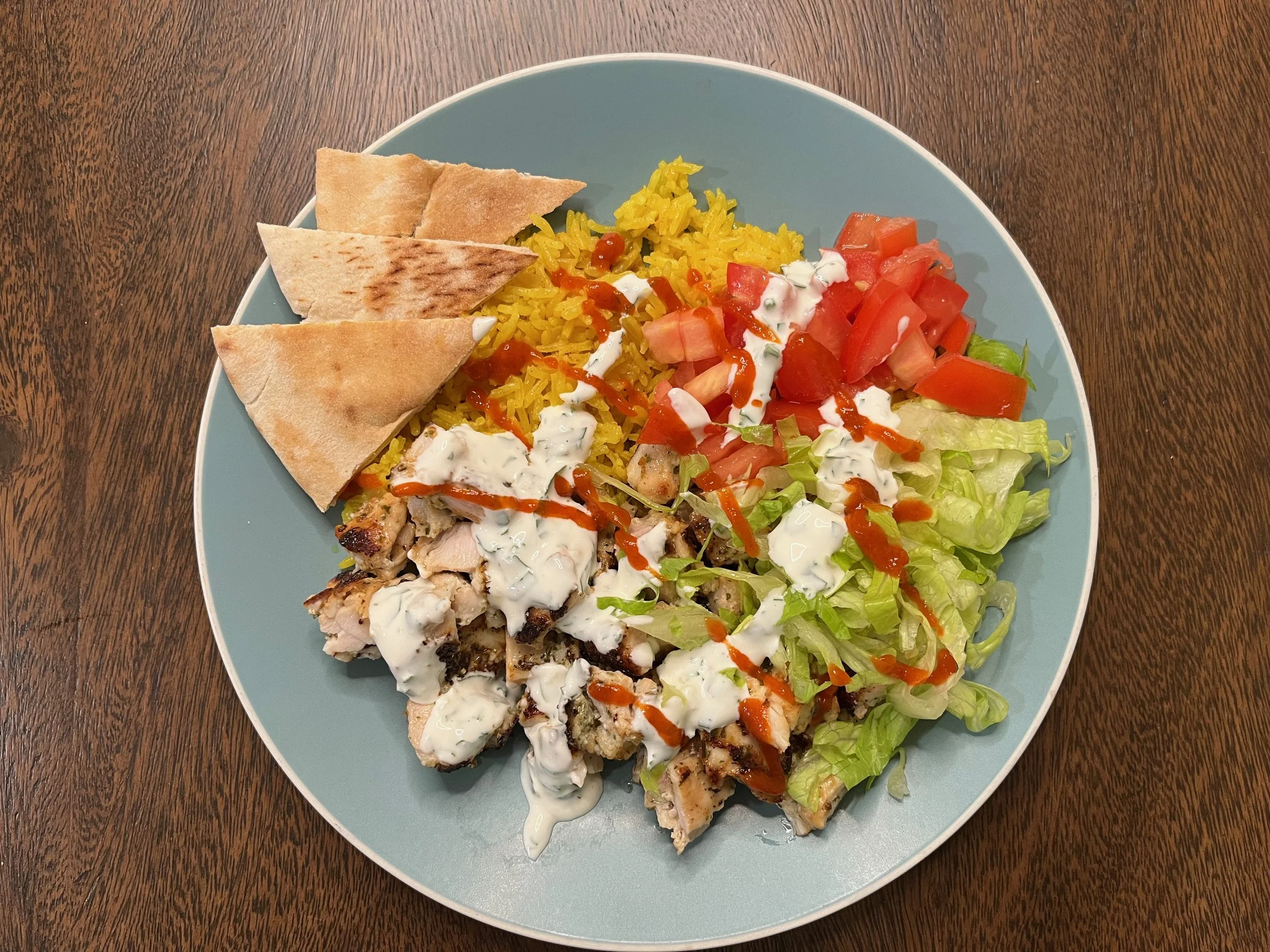 When I was a grad student, I often found myself at a halal food truck, grabbing a quick bite to eat between classes or experiments. That steaming hot container of grilled chicken, fragrant rice and crisp lettuce, topped with plenty of white sauce, became a delicious and comforting staple of ours.