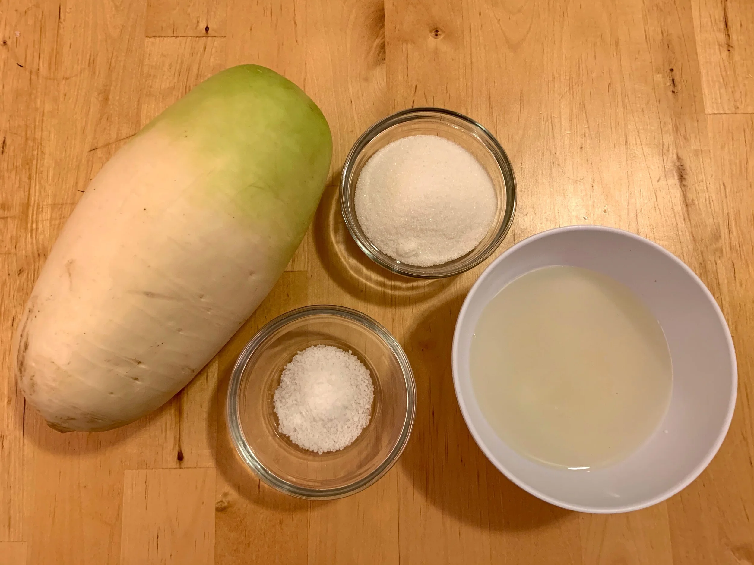 If you can’t find Korean daikon radish, you can substitute standard white daikon radish. However, normal daikon radish is not as firm as the Korean variety, and will not stand up to prolonged pickling. Instead, let the radish pickle for only 20 minutes before serving. Carrots can be pickled using this recipe as well.