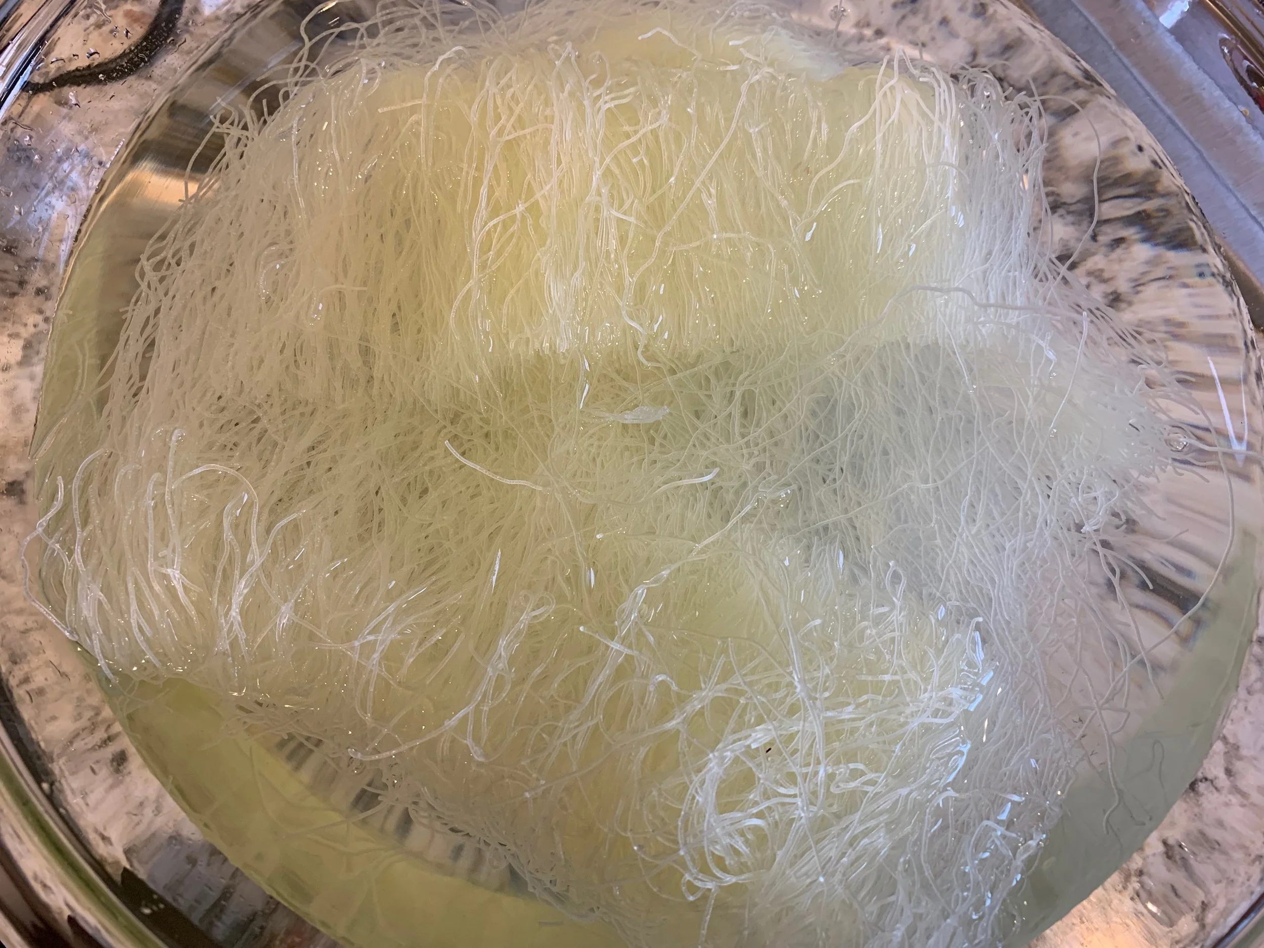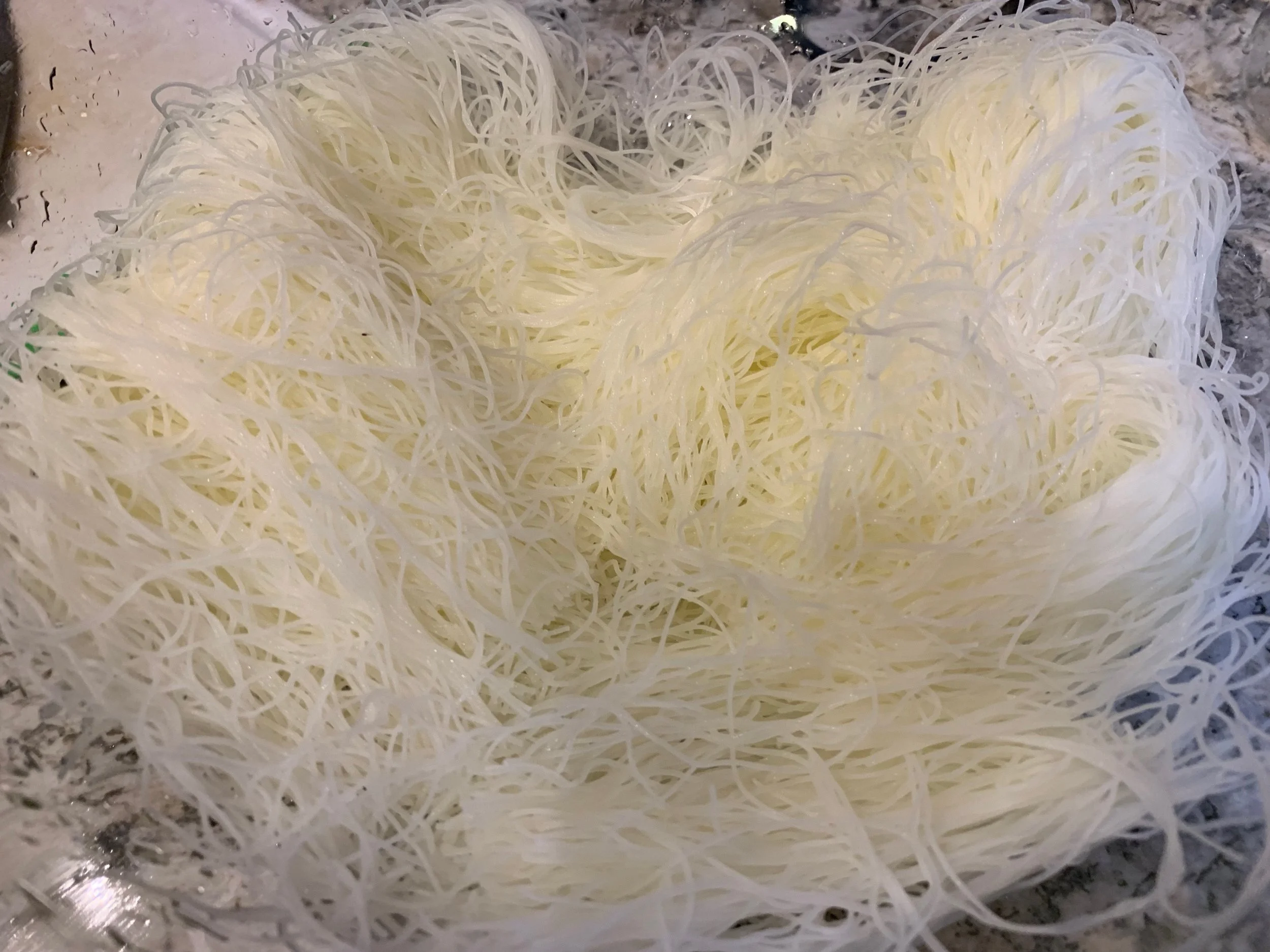 2. Soak the rice noodles in lukewarm water to soften. After 10 minutes soaking, drain the noodles well.