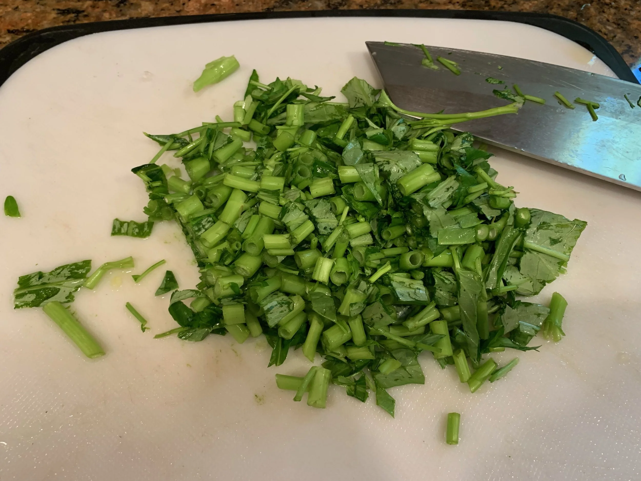 1. Chop the morning glory stalks into ½ inch pieces, discarding the tough stem ends.