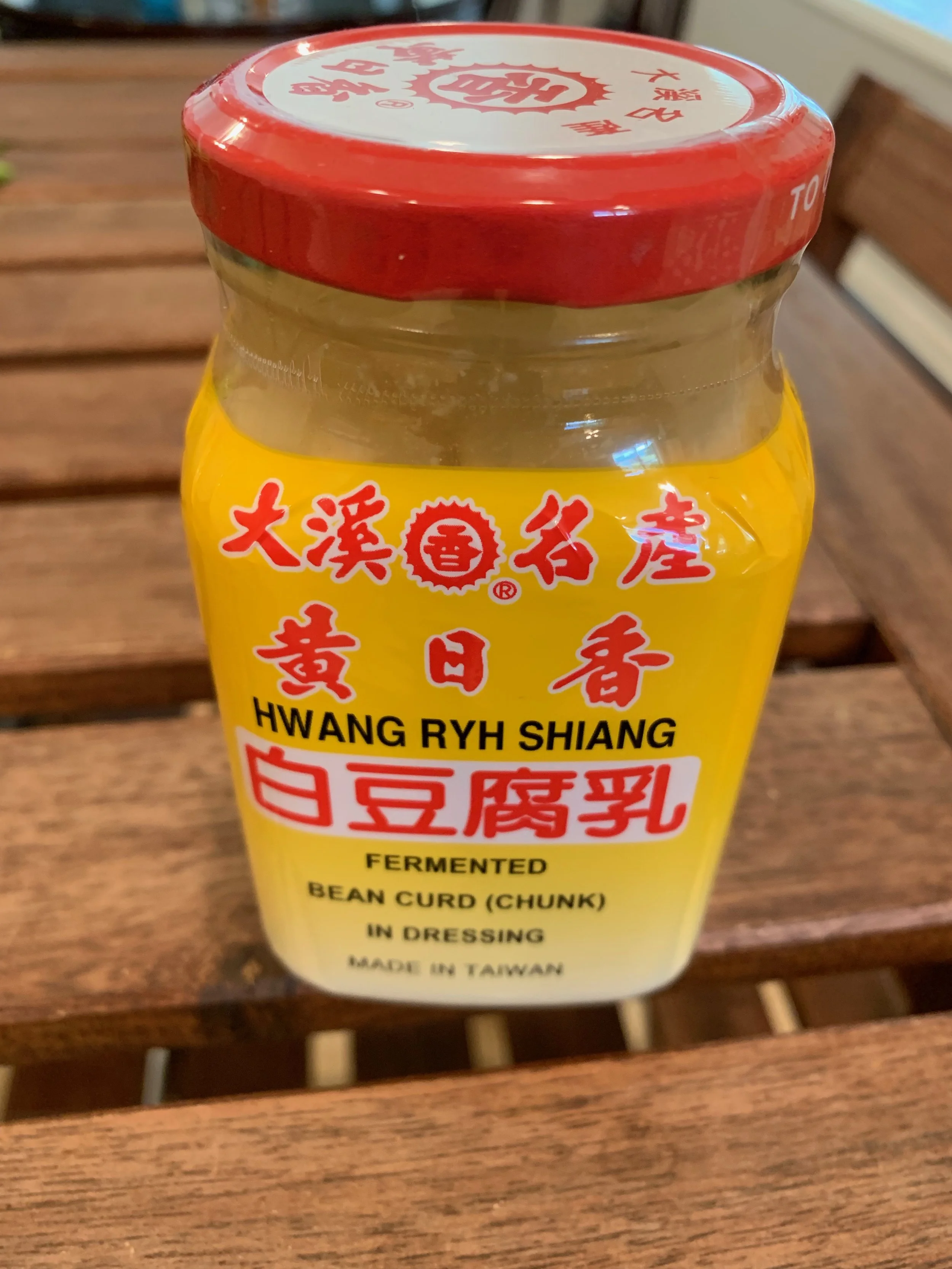 A common method of flavoring morning glory in Sichuan and Cantonese cuisine is to use fermented bean curd, or 豆腐乳 (dou fu ru). Fermented bean curd is made by brining tofu in a brine of rice wine, salt, and spices. If fresh tofu is the soymilk world’s analogue to a fresh mozzarella cheese, then fermented bean curd is soymilk’s answer to blue cheese, with a creamy texture and a salty, funky flavor. [1] While eating fermented bean curd directly can be an acquired taste (much like blue cheese), it is a great ingredient to use in small quantities, adding a distinct savory flavor to the whole dish. We will be using the morning glory stalks for this dish, which are great at picking up sauces because of their hollow nature. [2]