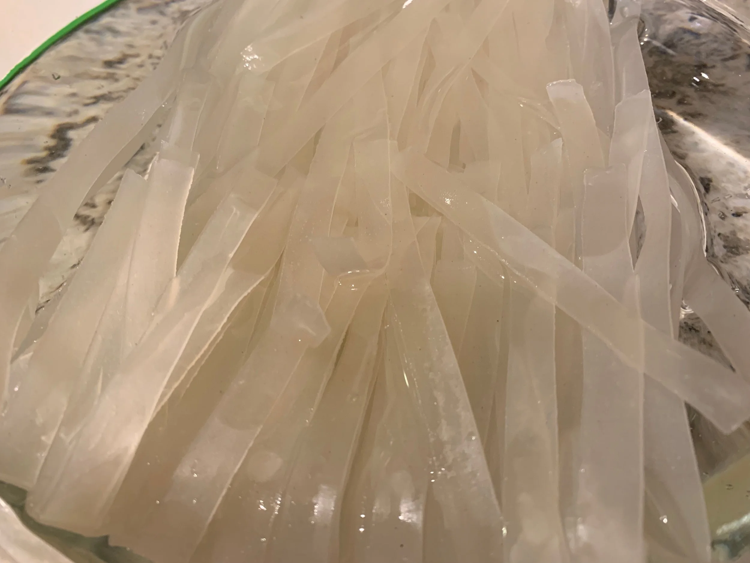 1. Soak the dried rice noodles in hot water for 30-40 minutes, or until soft. When the noodles are pliable, drain the noodles well.