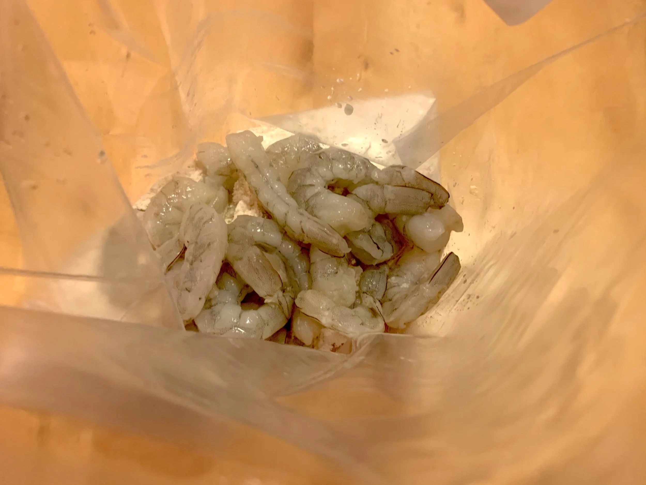 2. Place the shrimp in the zipper bag with the flour. Seal and toss well to coat the shrimp.