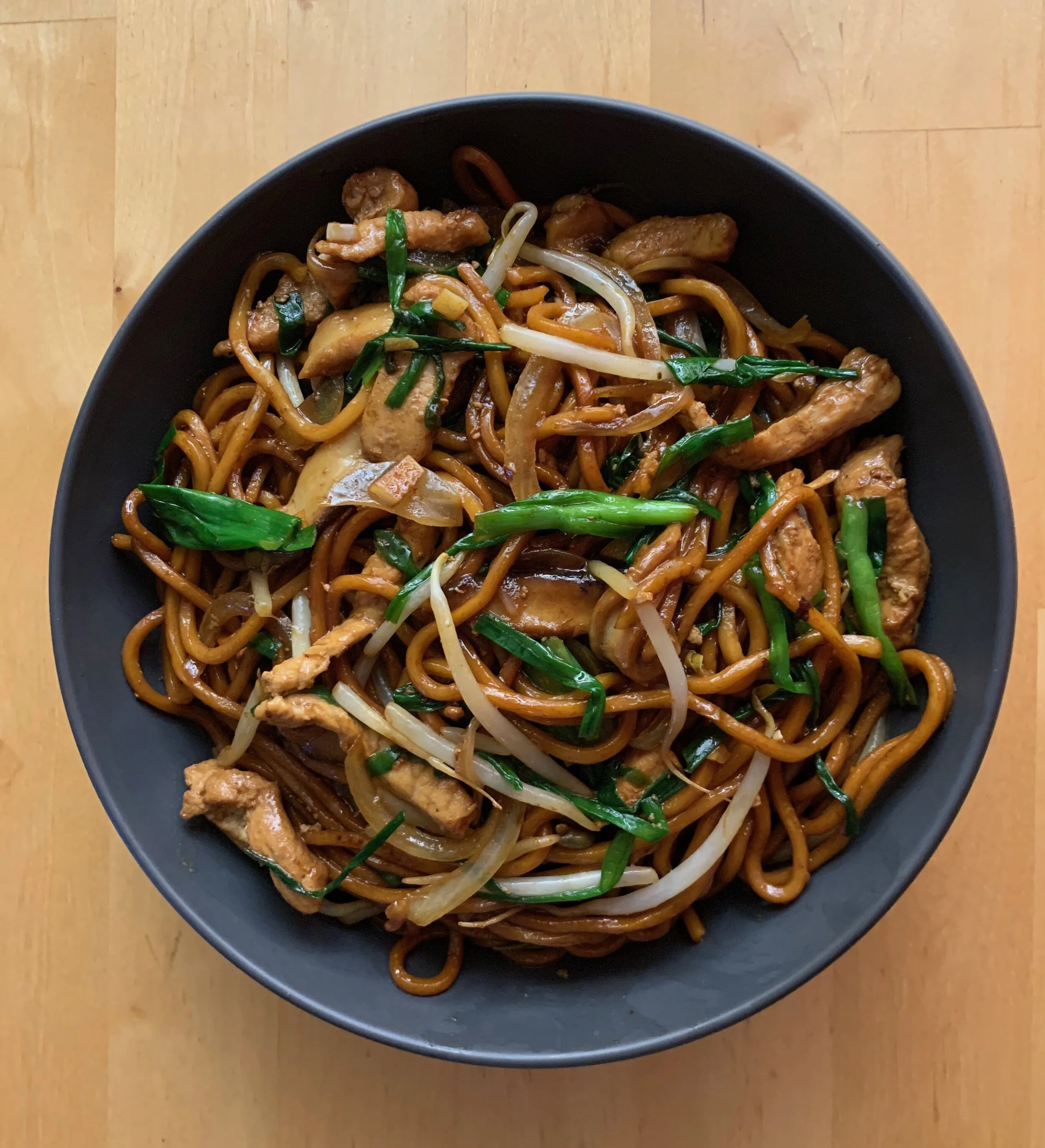 Lo mein [1] is a classic Chinese dish—egg noodles stir-fried with meat and assorted vegetables. This recipe features pork loin, but can be easily adapted to other proteins, such as chicken, shrimp, beef, or bean curd. No banquet is complete without a great platter of noodles, particularly so during Chinese New Year, as noodles are said to represent long life! [2]