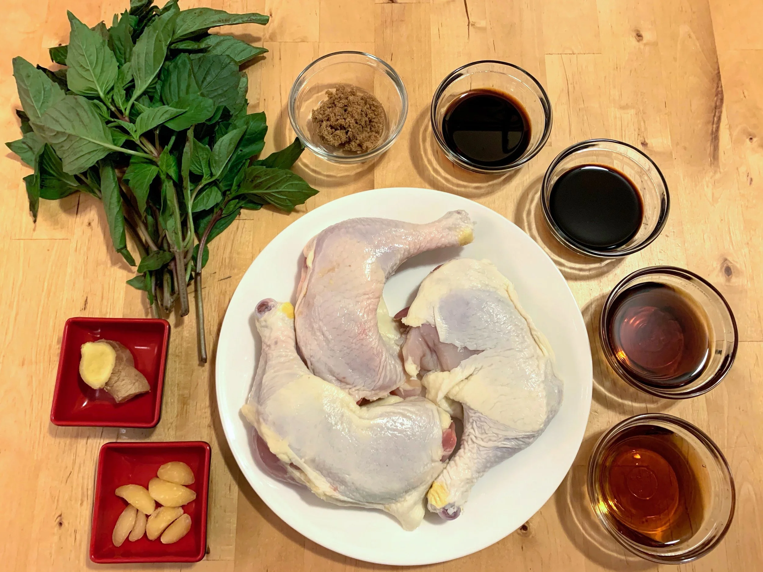 For a less salty dish, reduce amount of regular soy sauce (dark soy sauce is more flavorful, but not as salty, as regular soy sauce). This recipe also works great with chicken wing pieces. If you’re looking for a fast version of this dish, you can use boneless, skin-on chicken thighs, chopped into 2-inch pieces. These will cook faster, but the dish won’t quite have the depth of flavor that the bones provide. I do not recommend using chicken breast for this recipe—the lean meat will end up dry. If you’d like to add some spice, add some fresh red chilies to the pan together with the garlic and ginger. If you don’t like Thai basil, you can substitute chopped scallions.