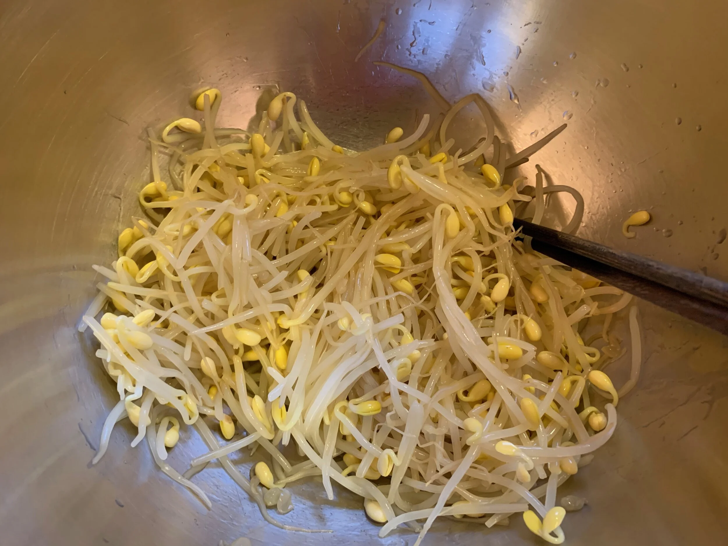 1. Add the soybean sprouts to a pot of salted water, and bring to a boil. Cook for 10 minutes.