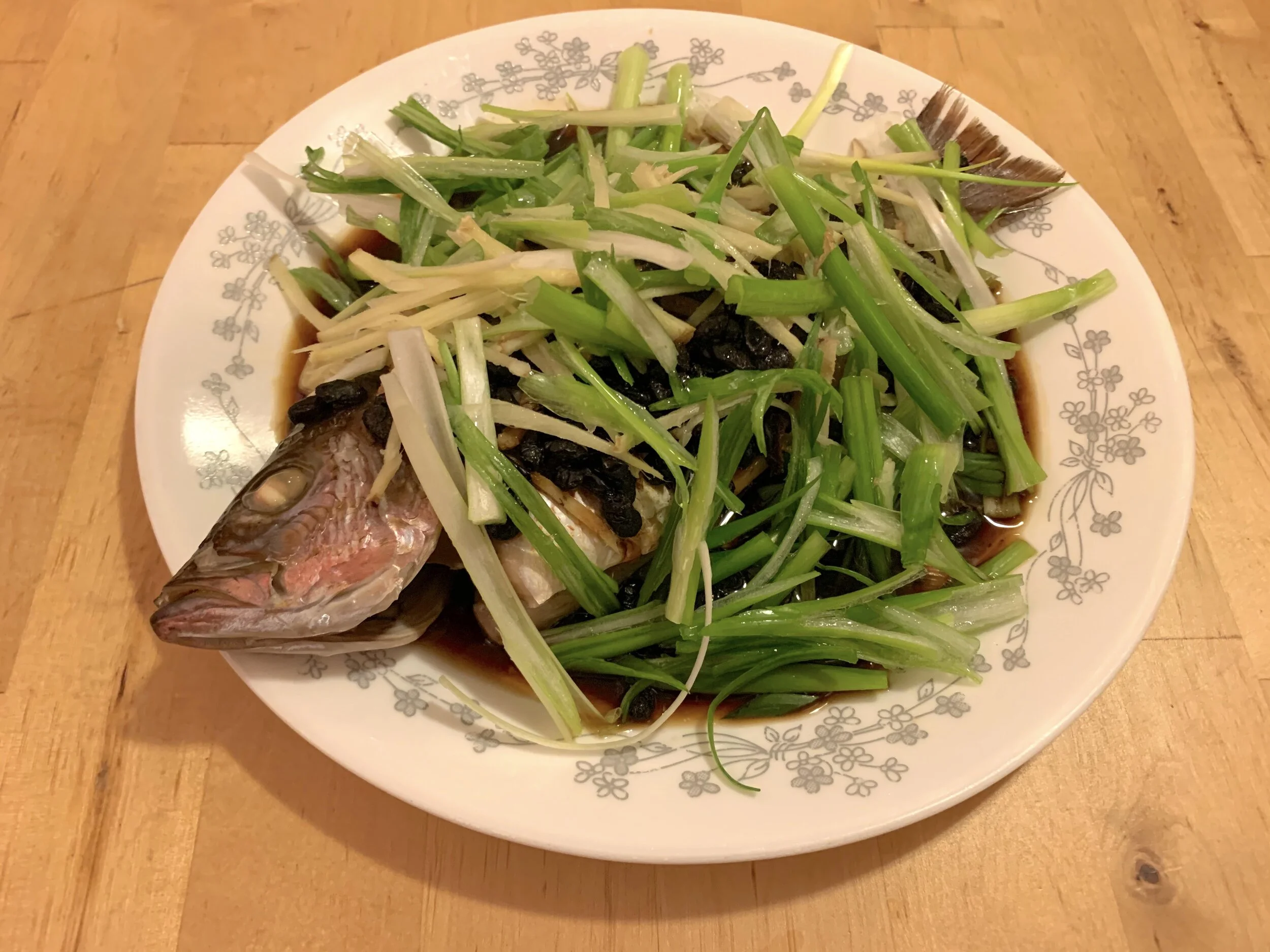 Whole fish is a staple of Chinese lunar new year dinners. Like most other celebratory dishes in Chinese culture, fish owes its place on the banquet table to a bit of wordplay. A common New Year’s blessing is 年年有余, wishing one to have a surplus in the coming year, and the Chinese word for fish, 魚 (yu), is a homophone for 余 (yu), the word for “surplus.” Thus it is considered good luck for the coming year to eat fish.[1] This steamed fish, topped with fermented soybeans, ginger, and scallion, is a simple traditional preparation.